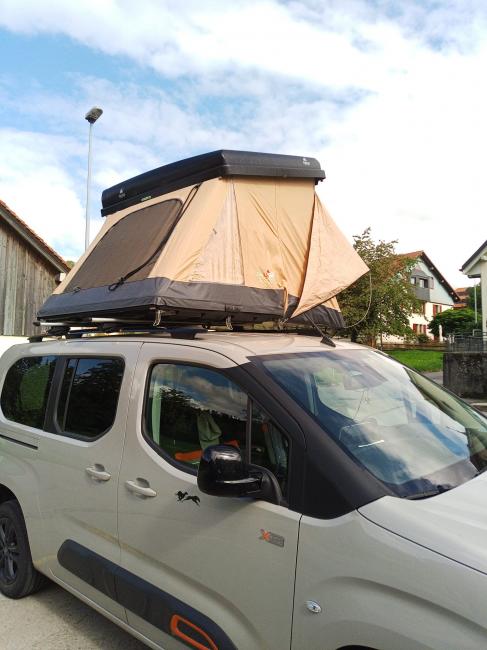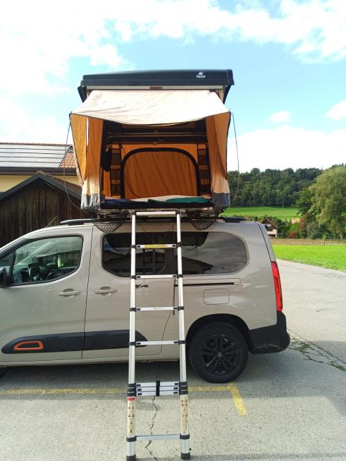 Je vends ma tente de toit Triup de la marque Naïtup sous coque aérodynamique de 160x125x28 cm. La hussarde Triup est suffisante pour 2 adultes et 1 enfant et a un espace de couchage de 220x140 cm. Elle est en toile coton, est en parfait état car peu utilisée ( 2 semaines par an), encore sous garantie jusqu'en 2028. Elle a de nombreux accessoires achetés en option comme les lampes, les poches de rangement, les hamacs de rangement, le auvent de porte, les filets à chaussures, l'échelle amovible grande hauteur, le matelas ferme, les verrouillages inox, le sous- matelas, la housse anti- condensation. Elle est adaptable à un maximum de véhicules et de barres de toit. Achetée en Suisse en 2023 auprès du distributeur officiel de la marque au prix de CHF 4805.00 options comprises, je la revends CHF 3'800.00 à discuter