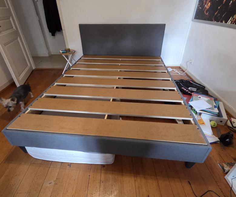 Vends lit IKEA modèle type TÄRNKULLEN (ancienne version), dimensions 160x200 cm, coloris gris moderne. Structure en excellent état avec lattes en bois, convient pour tous types de matelas. Cadre facile à démonter/remonter et à entretenir.