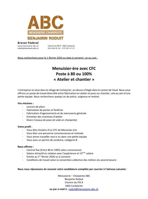 ou par e-mail à : roduit@menuiserie-abc.ch