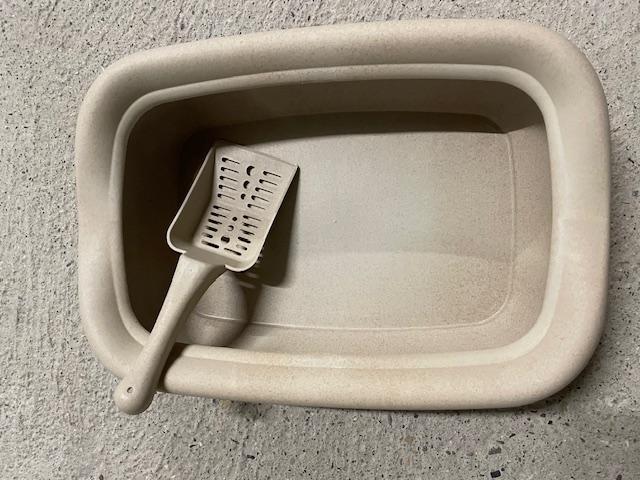Litière neuve pour chat, avec ramassoire spéciale.