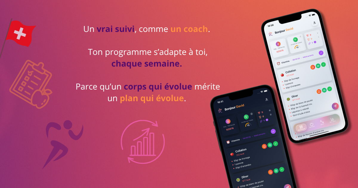 KAI Swiss, c’est le coach nutrition + sport le plus avancé de Suisse, directement sur ton smartphone.