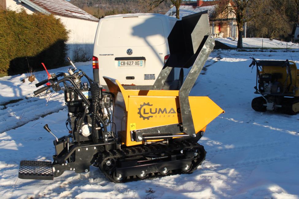 Mini dumper Lumag MD 500HPROS, à essence, polyvalent avec système hydraulique de basculement et pelle.