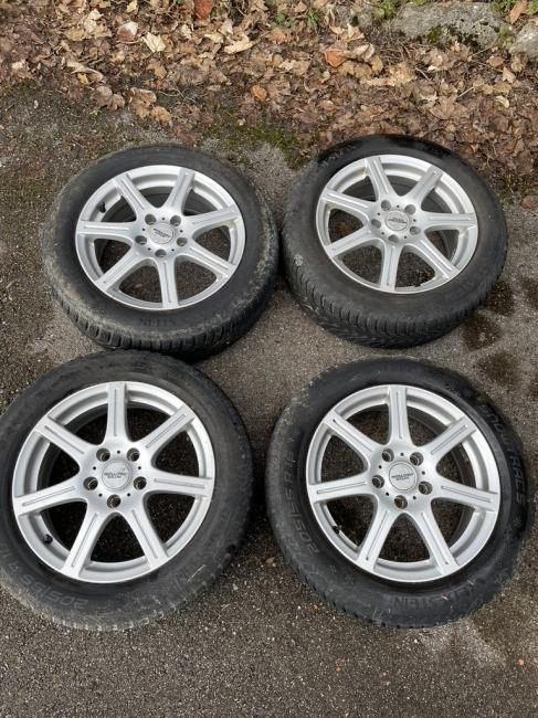 4 jantes alu 61/2 x 16 ET 42 5 x 112 avec pneus à neige, usure moitié, prix pour les 4 roues.