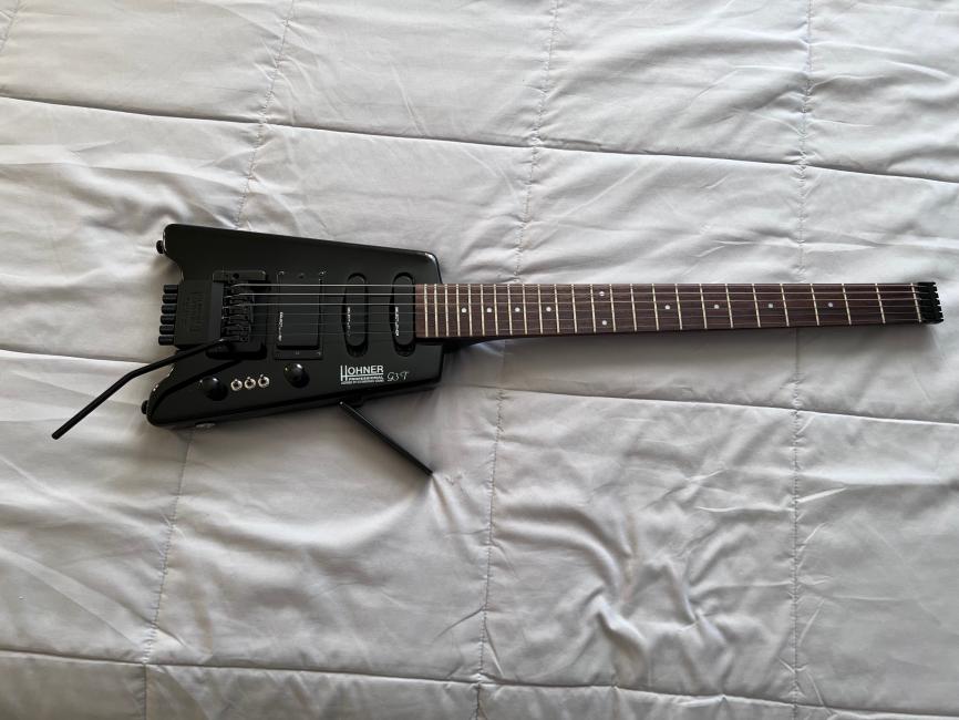 Super guitare de voyage, avec très bon confort de jeu, équipée de micros EMG d'excellente qualité (HSS), le double est splittable, ce qui lui donne une grande polyvalence.