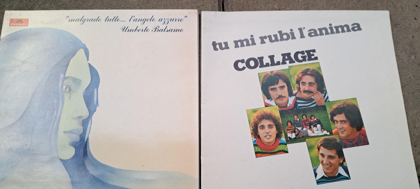 7 Disques d'anciens chanteurs Italiens : Umberto Balsamo, Collage, Amedeo Minghi, Nino D'Angelo chanteur Napolitain, Gino Paoli, Dori Ghezzi, Gianni Bella.