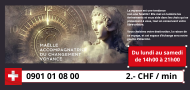 0901 01 08 00 pour 2.-/min. de 14h00 à 21h00 du lundi au samedi.
