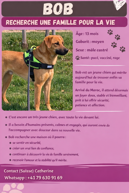 Bob un adorable beldi de 14 mois est actuellement en famille d'accueil à Lausanne. Il est attachant, doux, calin, il obéit très bien. Ils adore tous les autres chiens et respecte les chats de la maison.